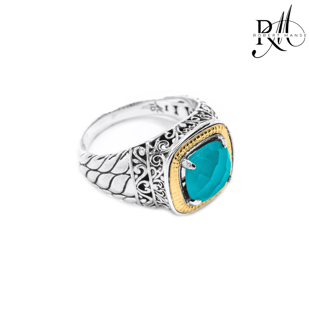 Bali RoManse Chalcedony & Two-Tone Scrollwork Ring