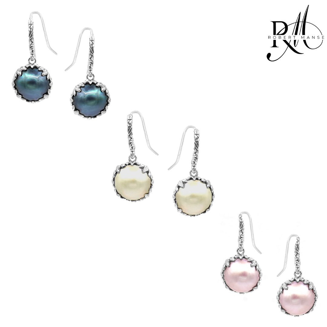 Bali RoManse Mabe Pearl Floral Vine Sterling Silver Drop Earrings