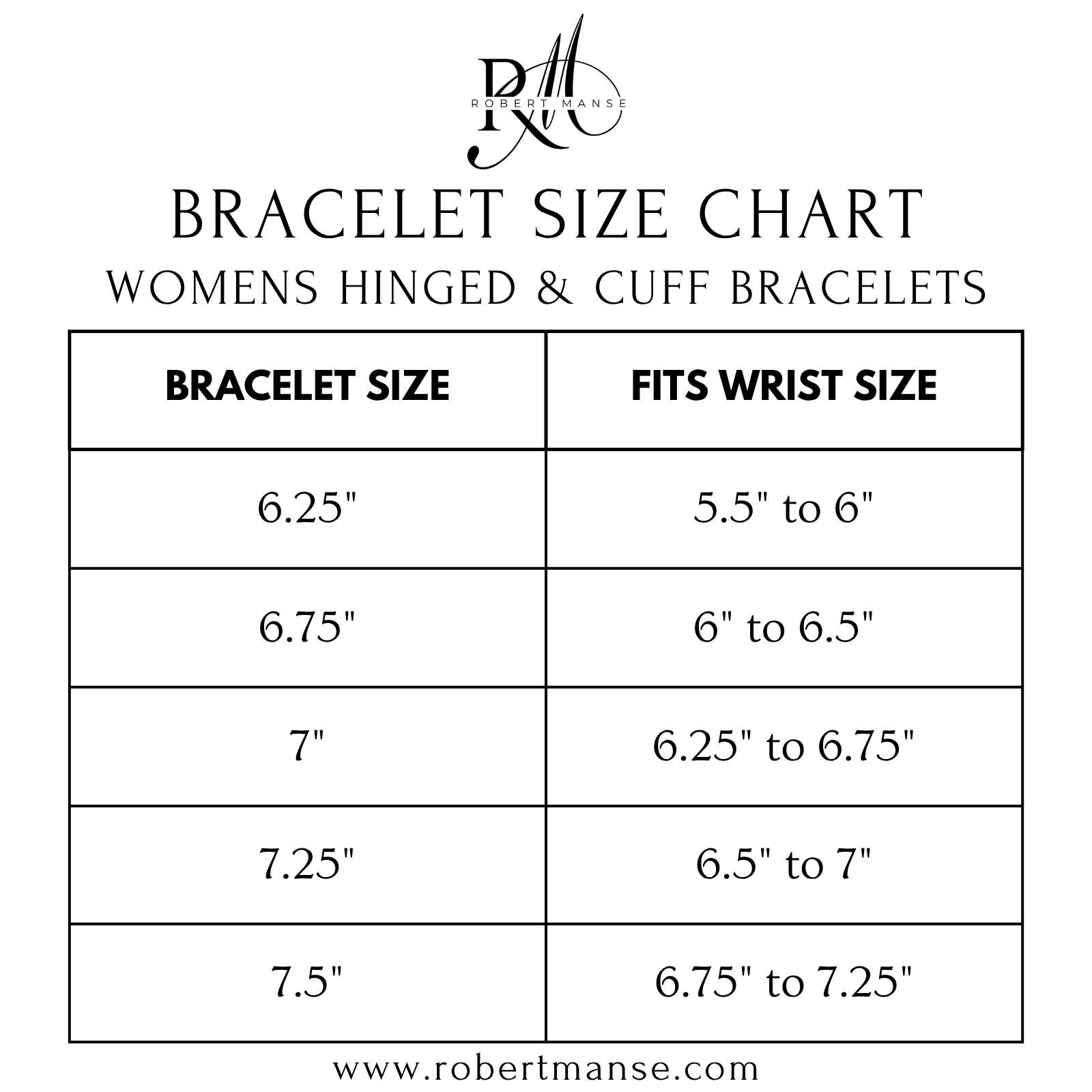 - 6.75" (fits wrists 6.25" to 6.5")