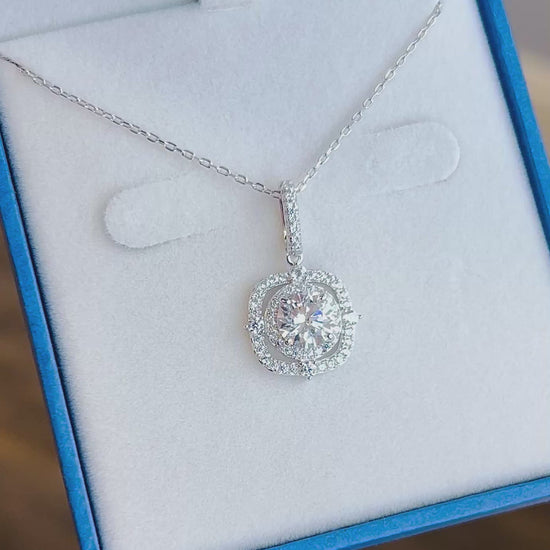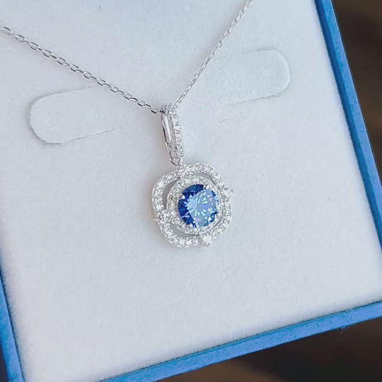 CZ RoManse Tanzanite CZ Square Halo Rhodium Plated Sterling Silver Necklace
